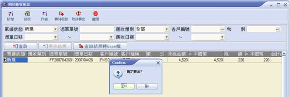 5. 點選【轉待收款】,出現對話框是否確定轉出,請按【Yes】。