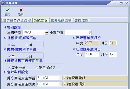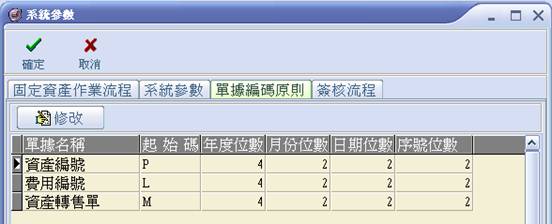| (2) 點選【修改】,輸入起始碼、年度、月份、日期、流水號位數。 (3) 完成後,請選擇【Ⅴ】。 |