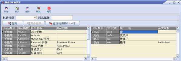 於料品類別主檔勾選分BIN資料的料品,均須建立本檔