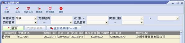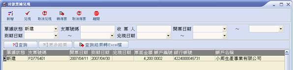 (2) 單據狀態由【新建】自動轉為【兌現】。