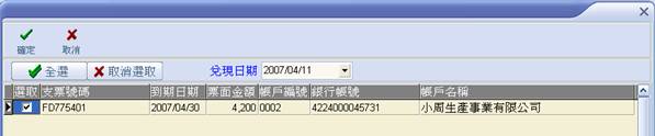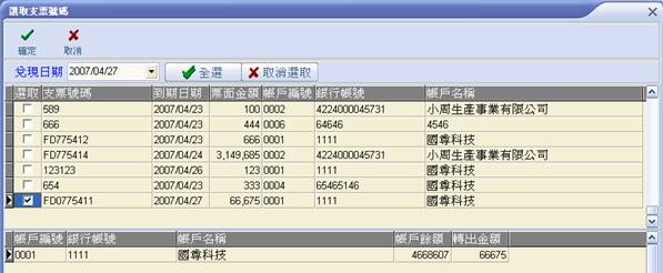 (3) 按【轉傳票】,出現已兌現票據選單,勾選要轉傳票的票據,按【Ⅴ】。