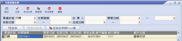 (5) 單據狀態由【兌現】自動轉為【已轉】。