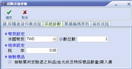 (2) 輸入本國幣別、小數位數、稅率、並勾選檢驗壞品是否需入庫。