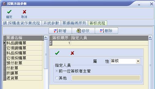 (5) 依相同方式設定全部單據指定人員,完成後請選擇【確定】。
