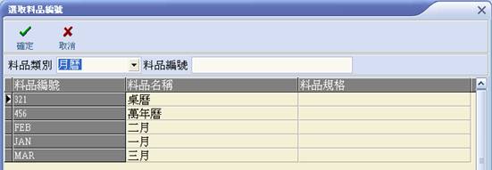 2. 選擇欲建立採購廠商的料品編號,點選後請選擇【確定】。