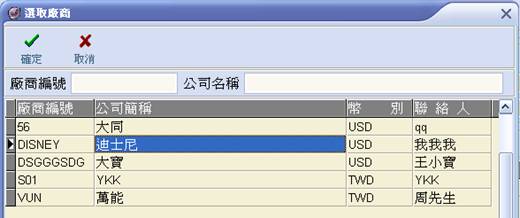 4. 選取廠商,確定後請按【Ⅴ】。