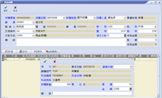 修改新建之採購單 |