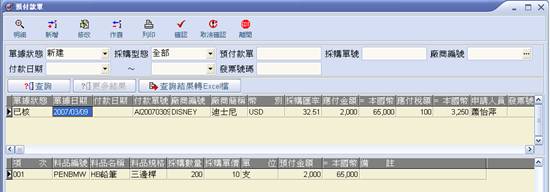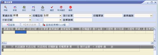 須於本採購進貨系統/付款單建立前,完成採購單之預付款單。