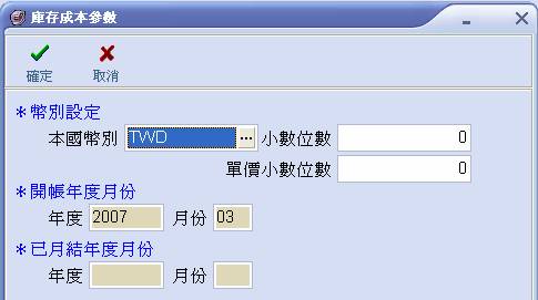 2. 輸入本國幣別、小數位數、單價小數位數後,請選擇【確定】。