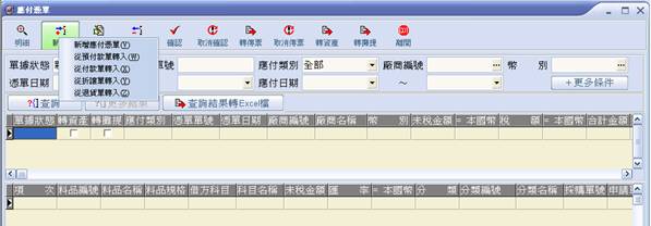 - 從付款單轉入→已做付款單的應付憑單建立