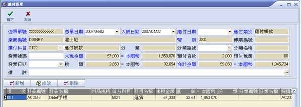 新建之應付憑單確認 |