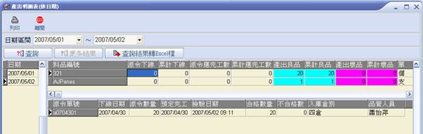 產出明細表(依日期)