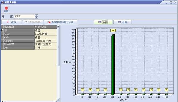 2. 由左邊來切換料品編號,右邊來觀看該料品的產量