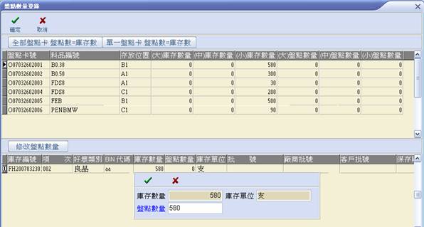 8. 各盤點卡之盤點數量均輸入完畢後按【確定】,此時主畫面下方,盤點數量已呈現出來。