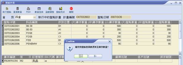 9. 點選【盈虧調整】,即跳出對話框,詢問是否更新庫存數量,正確請點【Yes】。