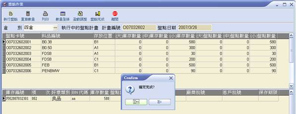 14. 點選【盤點完成】,即跳出對話框,詢問是否確定完成,請點【Yes】。