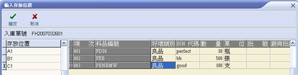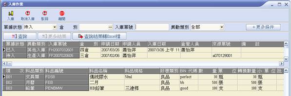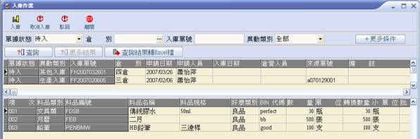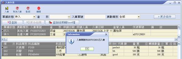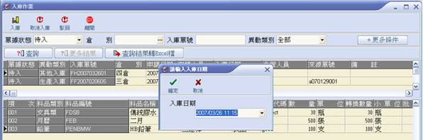 待入之入庫單執行入庫作業