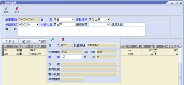 修改新增出庫申請單 |