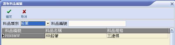 3. 按【新增】,點選料品類別、料品編號後按【Ⅴ】。 |