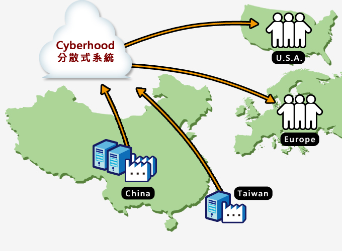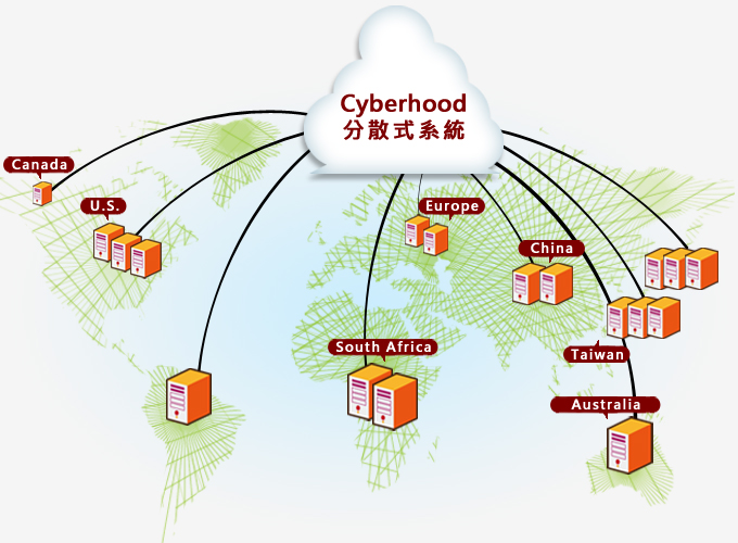 CYBERHOOD 替他们建立了一个全球性的分布式管理系统,共有20台服务器,分散在亚洲、澳洲、欧洲、美洲、及非洲,有2000多位使用者,他们的问题,Cyberhood帮忙解决了!不仅如此,他们更在Cyberhood 的分布式网络平台上开发属于他们自己专属的应用程序,如捐款管理,信众会员管理、会务管理、等等,使得全球据点得以同时连线作业。