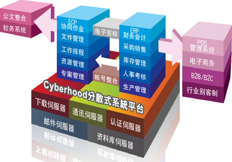 | 技术与人性两者兼顾的企业信息平台 | 让Cyberhood轻松解决您的问题! | 系统环境需求 | 丛集分布式架构 |