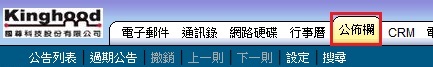 3. 公告列表可依據【公告主旨、公告者、公告時間】而做不同的排序,箭頭向上表示向上排序,箭頭向下表示向下排序。