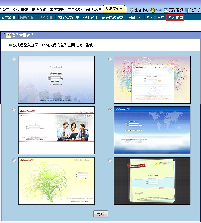 2. 點選「完成」,將於登出後可看見點選的登入畫面。