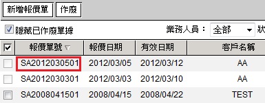 點選報價單單號,有權限的人員點選可編輯修改報價單內容,未簽核的報價單可作廢,一經簽核後,將無法作廢刪除。