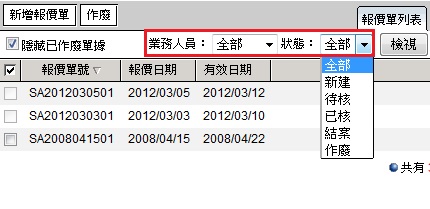 可於報價單右方報價單列表選擇檢視方式。