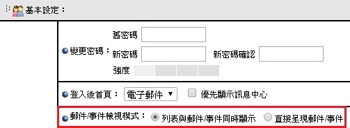 1. 於「個人設定」,可以設定登入後首頁停留在哪一個工具頁中。 2. 可選擇【列表與郵件/事件同時顯示】及【直接呈現郵件/事件】,點選後按左上方之「完成」。