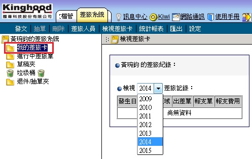 點選左側「我的差旅卡」可看到如下畫面,依年度呈現個人的差旅相關資訊。
