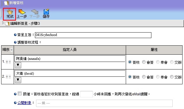 5. 選擇承辦人員或者其他流程。