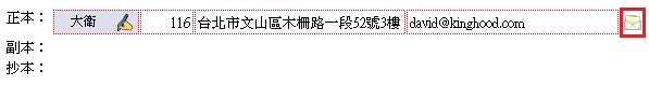 7. 以電子郵件方式發送公文--正、副、抄本人員email address填寫完成後,點入「 」 ,選擇是否寄送副本給承辦人,若有附加檔案,請再次確認一併寄出的檔案。